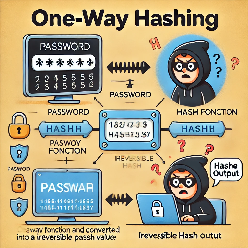 안녕하세요! 😊 오늘은 패스워드를 안전하게 저장하는 방법인 **단방향 해싱(One-way Hashing)**에 대해 알아보겠습니다.