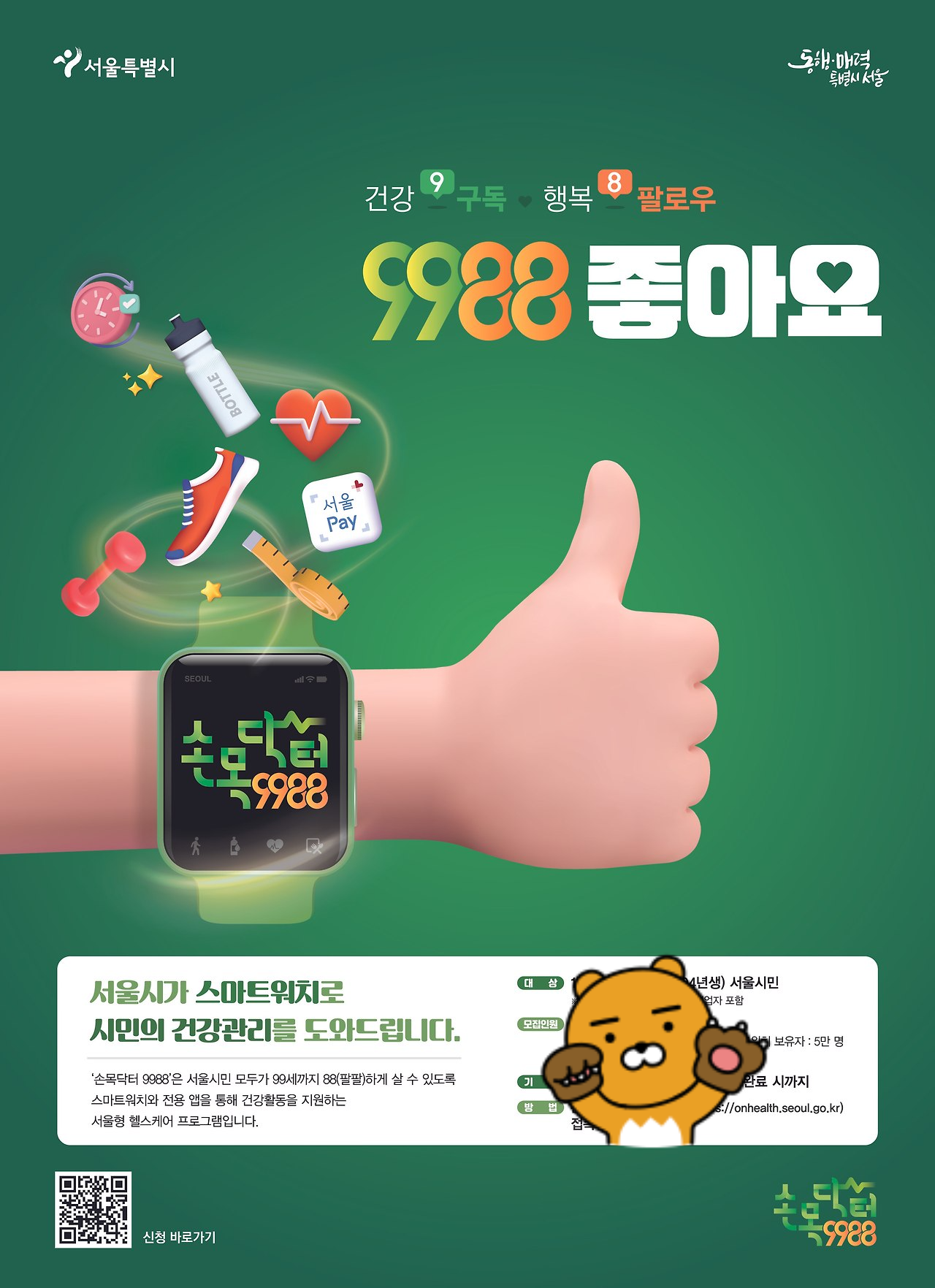 손목닥터9988은 **건강을 관리하면서 포인트까지 적립**할 수 있는 서울시의 혁신적인 프로그램입니다. **꾸준히 걷고, 포인트를 모아 서울페이로 활용하면 실질적인 혜택**까지 받을 수 있죠. **오늘부터 손목닥터9988을 시작해서 건강도 챙기고, 포인트도 쌓아보세요!** 🏃♂️💰